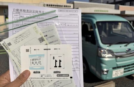 慌てて軽自動車の車検予約サイトを見たら、13日の10時15分ならOK。それから急いで点検を行う。といっても光軸やサイドスリップ、排気ガスはテスター無いため検査ラインで一発勝負です。点検は家の工具で可能。空気圧の調整など行い、深夜に終了。書類は車検証だけでいい。翌日、軽自動車の車検場で代書をしてもらいつつ自賠責保険(24ヶ月で1万7540円)に加入。