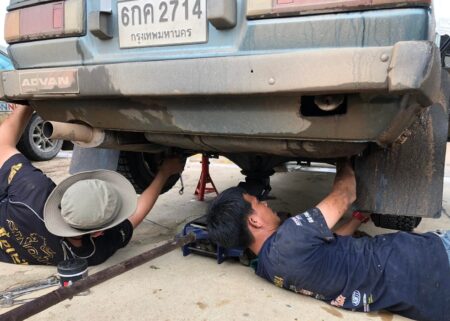 サンコーワークスの喜多見さんに頼んでタイで探して貰ったのだけれど、タイ人の日本車愛好家に聞いたら「何度も乗るなら作っちゃえば?」となり、4月上旬から突貫工事で車両製作した。タイあるあるで、走らせたら必ずどこか壊れる。イキナリ竹平兄に乗って貰うのはアカンだろう、ということで開催された5月22日のタイ国内シリーズ第2戦にシェイクダウンとして喜多見さんが出場!