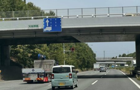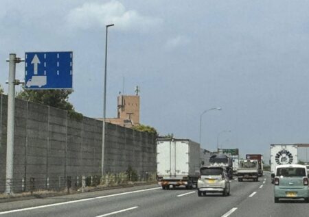 この標識「大型貨物と大型トレーラーは一番右を走ると違反!」ながら、なぜか取り締まらない