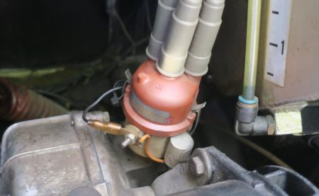 ということでヨメさん呼んでセル回してもらう。するとどうよ! すんばらしい火花! バイク時代を含め、これだけ強い火花飛んでるプラグなど見たこと無し(新世代のクルマの火花、見たこと無いです。念為)。どうやら点火系の問題じゃなさそうだと判明す! 言うまでも無くエンジンの基本は1)良い火花。2)良い燃料。3)良い圧縮。の3つ。圧縮は問題無いから燃料です!