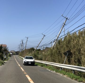 250kmくらい走って出会った2車線以上ある道路沿いの電柱損傷はこの場所だけでした。TV映像出るとしたらココだと思う。しかも前回書いた通り空き屋や別荘の損傷も多数! そもそも半壊している家屋だと火災が怖くて通電させられない。こういった状況の中での電気工事のため、ここからは個別対応に近くなっていく。TVコメンテーターが怒っても意味なし!