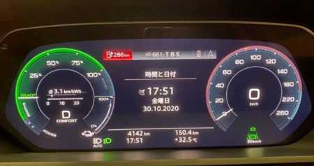 eトロンは常時前方をチェックしており、前方に車両いなければコースティング。前方に車両いるとエンジン車がアクセル戻した程度の”エンジンブレーキ”を掛けるのだった。これ素晴らしい! 全ての電気自動車がこの制御をお手本にすべきだ。クルマとしての質感は高く、安心度も従来のクルマと同じ。これなら安心してハンドル握れ、誰にでも安心して推奨できます。