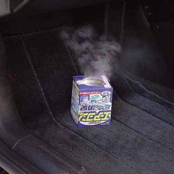 もっと安価なスチームタイプもある。これもボタン操作しエアコン掛けた車内に15分くらい置くタイプ。私は車内の空気取り入れ口を狙えないため使ったことないのだけれど、カーメイトで出しているくらいだから効くんだと思う。コスト的にリーズナブルだから、複数買い置きして気軽に使ったらいい。臭いでクルマ酔いするお子さんも多いため、ぜひ試して頂きたい。