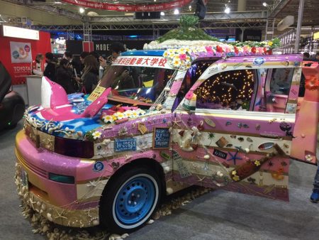 今回の「スゴイね!」が上のクルマ。毎年この手のクルマを出している自動車大学校ながら、今年の懲り方はパネっす! ヒトデだの貝殻だの付いているあたりからすれば、マリンのイメージなんだろうけれど、そんなカンタンなモンじゃない感じ。ボンネットからイルカ生えてるし。
