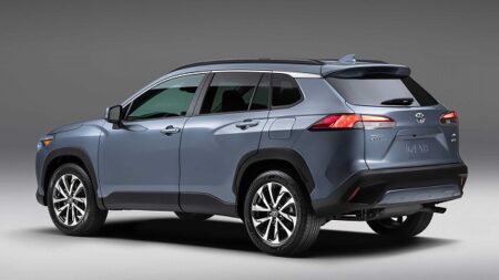 カローラクロス、ハイブリッドの売れ筋モデルで275万円。顔が少しコイ(魚)っぽいです