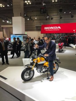 ホンダのブースではコンセプトカーを案内してもらった後、今回のモーターショーのバイク部門人気ベスト3に入るモンキー125ccを見つけてまたがっていたとのこと。ぜひともバイクも乗って頂きたいです。楽しっすよ。ホンダのバイク担当の人は、大喜びだったとか。