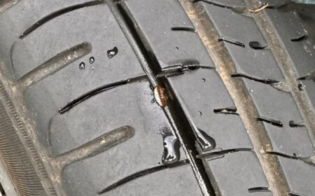 空気圧不足やブレーキパイプの酷い腐食など、そのままだと危険なクルマを何台かスクリーニング出来ました。下はボルトが刺さっていたタイヤ。今回国交省の整備担当部署が2人イベントの視察に来ていた。聞けば近い将来やってくる整備士不足についての対策を考えているそうな。車検システムを続けるのも整備士が必要。厳しく意見交換したけれど、この件は完全に同じ方向です。