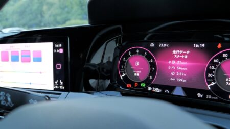 ディスプレイ下はタッチスライダーコントロールになっており、インパネのエアコンを操作するボタンや、ステアリングホイールのボタン等はタッチコントロール。私たちが慣れ親しんだスマートフォンのように直感的に操作できる仕様になっています。ただ、ボタンを押した感覚がなく、おじいちゃんやおばあちゃんにとって慣れ親しんだ感覚はないかもしれないので「スマートフォンをある程度使える人向け」のインテリアになってるかなという印象です。国沢師匠も、おじいちゃんやおばあちゃんのことを心配しておりました。