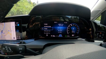 発進から停止まで心地よく、アイドリングストップで止まったエンジンも再始動時のラグがなくいつエンジンが掛かったのかわからないほど振動がありませんでした(EVを運転しているみたい!)。発進&停止を繰り返す街中ではストレスなく走れました。新しいパワーユニットTSIエンジン(48Vベルト駆動式スタータージェネレーター含む)や、低速でのモーター駆動力の補助、また低回転から機能するターボチャージャーの制御などが合わさって実現しています。ほくほく顔で試乗をしました。