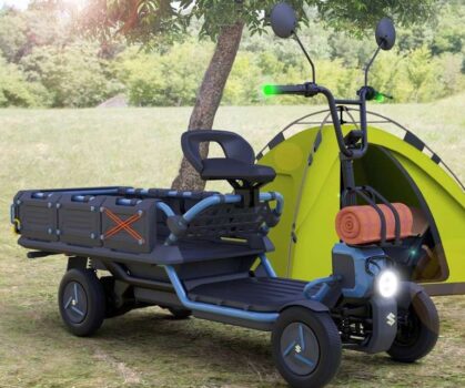 特定原付、車幅が600mm以下ならタイヤの数に制限無い。最高速20km/h。6km/hの速度リミッター付けることでセニアカーと同じく歩道も走ることが出来る。電動キックボードより圧倒的に安全だ。家の近所の買い物に使うもよし、SUZU-RIDEであればミニバンのラゲッジに積むことも出来そうだから、遊びに行った先の移動手段としても使える。こちらは20万円切ったら爆発的に売れそう。