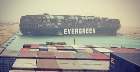 スエズ運河で世界最大級の全長400mあるコンテナが通せんぼ座礁。物流への影響は些少か?