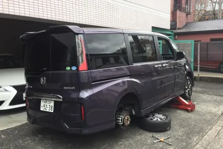 交換するタイヤをアパートの部屋から駐車場まで持っていくのはきついです。