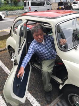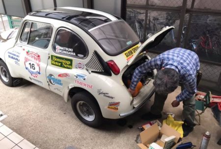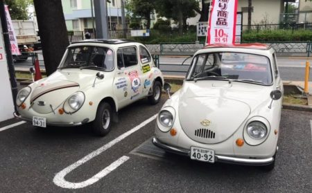 スバル360の件、グレートレースに出場する前からサポーターになって頂いている牧さんという方が「全日本てんとう虫の会」という1977年から続く伝統あるクラブの事務局/広報担当でありました! 相当のスバル360通だろうということは以前から知っていたのだけれど、私の体たらくにシビレを切らし「見に行きます!」。ということで本日ワザワザ来てくれた次第。