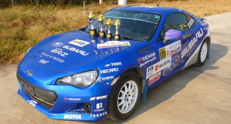 2013年のタイ国王杯とトライネーションズカップにエントリー。リアサスペンションのアーム折れに見舞われながら走りきり、BRZのデビュー戦でポディウムをゲットしました。ただ鍛え方が全く足りておらず前述の通りフルストロークしたらアーム折れたり、ブレーキの制御が上手く出来ず飛び出したりとタイヘンでしたね。でも後輪駆動をグラベルで乗ると超楽しい!