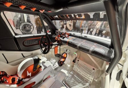 インテリアは完全に競技車両。フル溶接のホンマモンのロールケージが組み込まれていて気合い十分! ヒョンデというメーカー、最近イケイケ。おそらくインスタロイドのような市販モデルが出てくると思う。ルノーが電気自動車の”5”を出してきたものの、中身の濃さじゃ全く勝てない。スバルとか三菱あたり、小型の電気自動車ベースの本格的なスポーツモデルを出してくれないかしら。