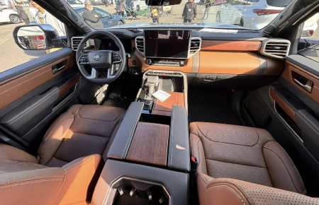 タンドラはトラックながらインテリアは完全にラグジュアリーな乗用車。大きい革張りのシートに、ソフトパッドのフルトリム。アメリカで何度かハンドル握ったけれど、乗り心地だって乗用車である。価格は6~8万ドルといったあたり。日本で販売されるダブルキャブの1784エディションで7万ドル台中盤くらい。1ドル=159円なら1200万円だ。消費税込みのためお買い得です。