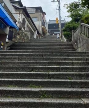 うどん修行は昼前にギブアップしちゃった。飛行機は1日2便に減便中のため、次だと19時35分発です。雨模様ながら念願のこんぴらさんへ行く! 航海安全の神様とありフネ関係者はお参りしなくちゃいけません。そしてこんぴらさんと言えば、785段の石階段修業。皆さん往復で1時間半ほど掛かるそうな。そしてこの時期は汗ダラダラとか。新型コロナでナマッた身体にゃキツい?