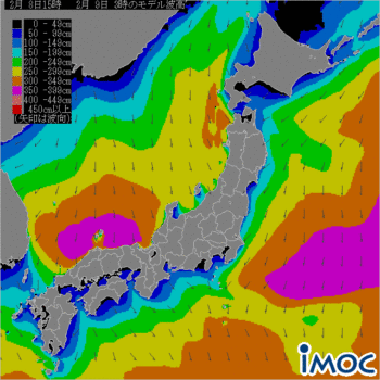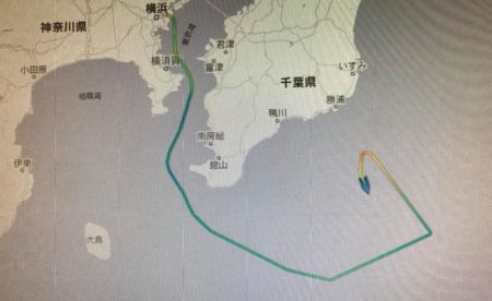 8日は朝から東京湾を出て生活排水を捨てに行ったのだけれど、どうやら9日の朝まで帰ってこないようにと言われているらしく、勝浦沖を行ったり来たり。速度も6ノットくらいまで落としたりするなど、時間潰しです。iMOCの波情報を見ると、波高”黄色”で250cm~299cmと小さいフネなら大揺れ。横波なのでフィンスタビライザーが効いているだろうが、波当たり振動あります。