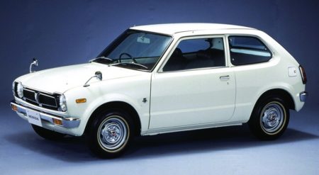 20年前と明日のクルマを比べると技術的に大きな違いがある。大きく分ければ3つ。ヘッドライトとラジエターグリル、バンパーです。下は初代シビック。フロントを真正面から見たら、ほとんどの面積がヘッドライトとグリル、バンパーだ。この3つの要素をどうやって組み合わせるかでフロントデザインが決まってしまう。グリルだって大きいためブランドの統一感も出せる。