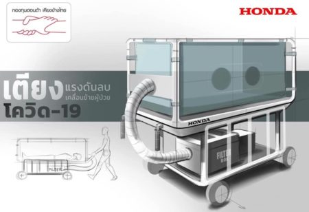 ホンダ、海外では積極的に動き始めているようだ。下はタイホンダで開発中の陰圧キャリア。解放したキャリアだとウイルスを拡散させる。陰圧にしたキャリアなら安心して移送が可能。ケースの中に寝かせ、横のホースから空気を吸い出す。下に設置した処理装置でウイルスを無害化して大気中に放出するというもの。これ、日本もあったら感染者の移送がとっても楽になる。