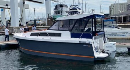 エンジンはスズキの115馬力。走らせてみたらガンガン走り回るというタイプじゃなく、キャンピングカーのように滞在を楽しむ方向。最高速は16ノット(約30km/h)くらい。快適なクルージング速度は12ノットくらいですね。私のフネも同じくらいの性能。クルマと同じでフネにもいろんな種別がある。私の夢は「どんなに荒れていても降参しないフネ」を持つこと。