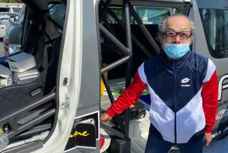 スタート前に竹平兄がクルマを見に来てくれた。竹平兄、私をラリー好きにした大先輩です。全日本ラリーのレジェンドだ。「面白い! 頑張れ!」と応援頂きました。はたまた全日本ラリー唐津で大きな話題になっているらしく、いろんな人から「どうよ?」と声を掛けられます。困ったことに全く走れていないため、1番「どうよ?」と思ってるのは私だったりして。