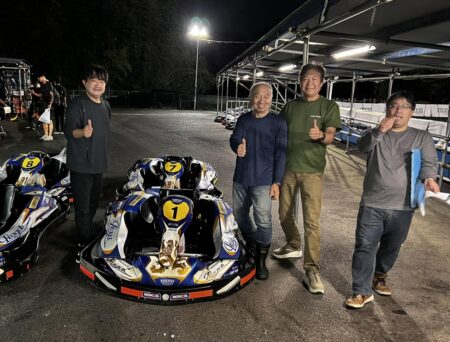 永田と静岡県の安藤君も勝負したいというので合流。秋が瀬サーキット、休日も17時30分からレンタルカートやってます。尾藤さんは最近すっかりマフラー職人になっているということで(御年72歳)、20年くらいサーキットを走っていないという。電話貰った後、どうやらコソ練に行ったらしい(笑)。ギョウカイの人っていくつになっても”前向き”です。