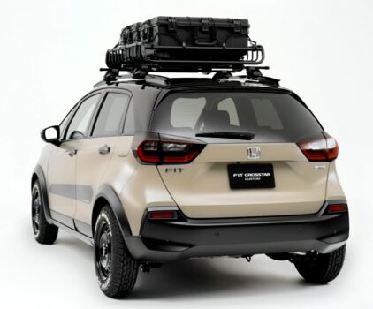 ホンダが開催中止になってしまったオートサロンで『フィットクロスター・カスタム』を発表する予定だった。リリース出てきたので紹介したい。といっても内容は私がいっつも「作ったらいいのに!」と言ってるクロスオーバーです。車高を30~40mmくらい上げ、外径の大きいトーヨーのオールテレーンタイヤを履かせている。おそらく最低地上高は200mmくらいあるかと。