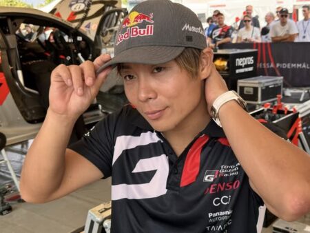 午後はサービスパークで取材。もちろん勝田選手にも話を聞いた。今シーズンはトヨタチーム全てのドライバーがセットアップで苦労しているのだけれど、理由を聞くと「ハンコックタイヤの特性が今までのピレリと大きく違うため今までのセットアップデータが使えないんです」。これで合点した。「すいぶん特性が解ってきました」。そんな勝田選手はシェイクダウンで1番時計!