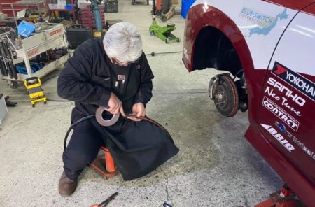 というか、どのくらい付ければいいのか難しい。フェンダー全周に付けてみたものの、何だか重ったるしいのだった。いすみに行くと、あらま! 自動車メーカーのデザイナーをしている人(いつもコドラやってくれてます~)が居ます。もっけの幸いとばかり、相談してみた次第。するとどうよ! まず喜多見さんが「これ接着が甘いですね!」と私が貼ったヤツをペリペリペリ。