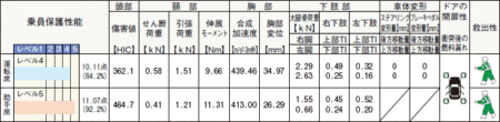 参考までに書いておくと、新世代のTNGAを採用した現行プリウスの場合、64km/hオフセット衝突させた時の頭部障害値(HIC)は運転席で324.7。1000を下回れば重篤なことにならない。これが55km/hのフルラップだと運転席で449.9に上がる。助手席は651.8になり、そろそろ危険水域。60km/hの衝突だと1000に近づくと思う。骨や筋肉の少ないお年よりだと厳しい。