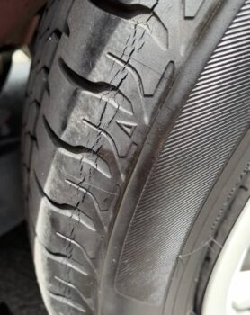 ブリヂストンタイヤのひび割れ、安全上の問題は無いようだ。車検も合格するということでしょうね