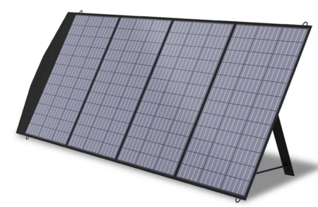 いや、最近はスポットクーラーなども出ているため、そいつを使えば狭い軽バンの車内なら快適な温度になる。搭載する電池は10万円以下で買える2kWh程度で十分だ。合わせて200Wくらいの太陽光発電パネルを買う。私みたいにルーフに載せてもいいし、上のような持ち運べるタイプを持って行くのもよし。ここにきて300Wで3万円少々。10時間で2kWhが満充電になる。
