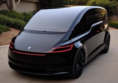 縦方向にデフォルメしたら、テスラミニバンのフロントはクリソツ?