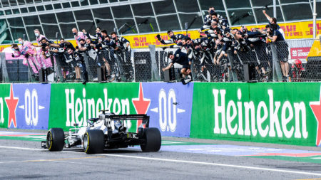 実質2位スタートのガスリー選手だって迷わない。だからこそリスタートでフリー走行から予選まで全てタイム的に負けているマクラーレンやレーシングポイントに追いつかれない走りが出来た。タイヤもリスタート時にハードから新品ミディアムに交換(したがって3セットのタイヤ使いました)。フランス人ドライバーの優勝は、モナコGPで無限ホンダのパニスが勝って以来だったりして!