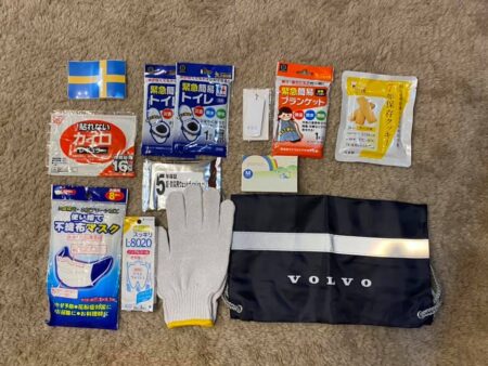 ボルボの広報車に防災キットが積んであった。このメーカーだけ何か違う気がします