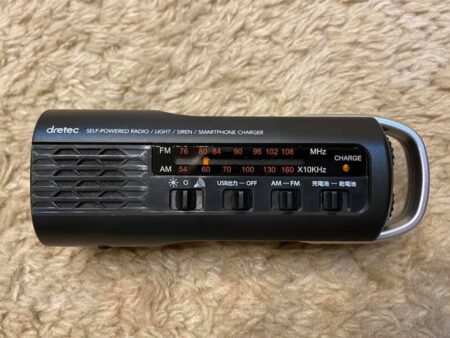そして手回し発電+充電可能なライトとAM/FMラジオ、スマホの充電が出来るUSB端子も付く。被災した時はコレ絶対必要! なかでもUSB端子とAMラジオについちゃ超有り難い。いずれにしろボルボの広報車を借りている時に被災したら、1~2日はサバイバル可能。他のメーカーも広報車にサバイバルキットを乗せて置いて頂けると嬉しいです~。