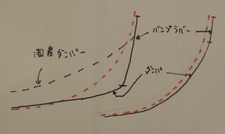 マツダでストロークの変移量を見せて貰ったら、私が以前書いたヘタなイラストの左のような動きをしている。欧州車(右)のように滑らかなストロークはしない。加えて国産ダンパーって微少入力の減衰力を出すのが激しく苦手。マツダによれば「高速道路を普通に走っていてもバンプラバーに当たっています」。このあたりがマツダ3の乗り心地の質感に関係しているような気がする。