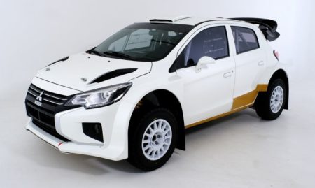 しかもカッコ良い! 5ドアHBベースながら、WRカーばりの巨大なリアウイングおっ立てたら案外似合う。標準モデルからの変更点、リアウイングと前後のオーバーフェンダーくらい。それだけでミラージュもこんな派手になります。三菱自動車でこのくらいのクルマ作りスポーティなエンジン搭載したら案外売れると思うのだけれどいかがか。少なくともマーチより100万倍魅力的だ。