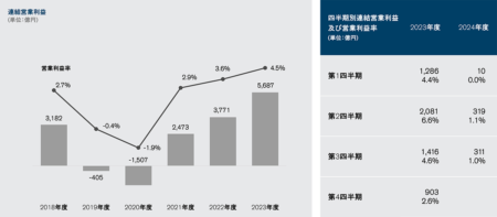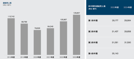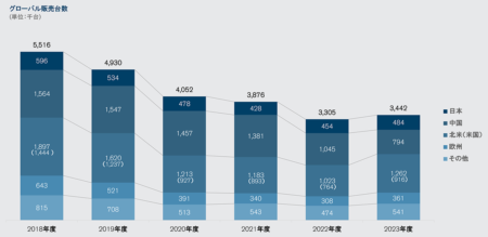 ただ連結売上高の推移を見ると、2020年を底に上がっている。台数落としてるのに売上高は上がっている? 格付け会社なら数字を鵜呑みにせず「なんで」と思う。バックボーンを見ると、2020年は新型コロナで販売台数落ちた。販売現場では2020年以前と同じく値引きなど継続して行っていたため、台数の減少と共に売上高も落ちている。この流れ、日産だけじゃありません。