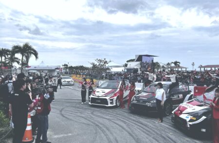 子供や女性から声が掛かるほど(笑)。ここまで人気のある自動車メーカーの会長って世界的に考えてもみたことないです。沖縄にも勝田選手や佐々木選手と言った人気ドライバーが来て走ったけれど、人気度では全くかなわない。ちなみに沖縄のモータースポーツって、歴史こそあるけれど、サーキットもないしラリーだって開催実績無し。関心ないかと思っていた次第。