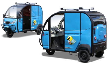 ちなみに登録は側車付き軽2輪ということになるようだ。250ccトライクだから普通免許。上は乗用タイプのため3人乗り。下が貨物仕様で1人+150kgの荷物を積める。鉛電池で最高速25km/h。航続距離50km(実用だと半分の25kmを考えておけば間違いない)。離島などの移動手段として使うのなら全く問題無し! アガリのクルマとしても良さそう。