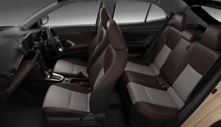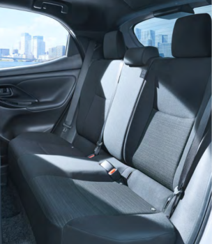 下はヤリス・クロスのインテリアだ。Cピラーの位置がヤリスより後ろになった分だけ、リアシート頭の位置が後ろになった。しかも天井高だって余裕。結果、リアシートの背もたれを倒せるようになったのだろう。ホイールベースはヤリスと同じ2565mmながら、アップライトに座るようになったため実質的なレッグスペースも余裕出来たと考えます(実車見るまで不明)。