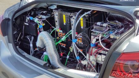 ベストカーで次世代プロパイロットの概要を解説したので、ここではもう少しディープな内容を。実は飯島さん、2022年に高機能プロパイロットの披露をしているのだけれど、この時は「もう処理能力や電力の限界。これ以上は難しい」と自動運転の進化を投げていた。下はその時の車両で、トランクには処理に使うECUなどぎっしり! 電気も喰う!