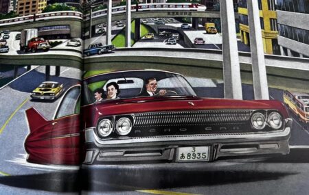 70年くらい前の図鑑を見ていたら未来のクルマはこんな風になると出ていた。タイヤが無く浮いて走ると紹介されてます。50年くらい前の図鑑だと21世紀のクルマといえばデザインは当時流行りだした流線型。そして空を飛んでいる。70年前だと流線型という概念が無かったためか、まんまアメ車ですね。それにしても動力や浮力はどうやって作り出しているのか大いにナゾだ(笑)。
