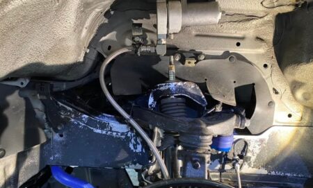 下がフロントサス。上側に見えるのがリザーバータンク。紫色のラバーブッシュや青色もオリジナルパーツだ。走るとどうか? Ver.4でも十分ストローク感あって滑らかに動いていたのだけれど、その上で動き始めからキッチリ減衰力を出しており、ストロークするにしたがって減衰力増えて行く感じ。そしてフラットライドである。ドイツのスポーツカーに乗っているみたい。