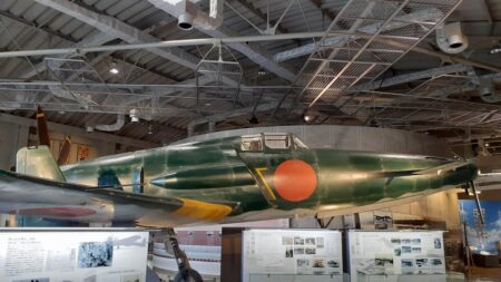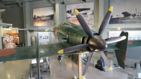 写真の機体はゴジラ-1.0の撮影で使われたモックアップ。福岡県の大刀洗平和記念館に展示されている。機体の形状からすると、1号機のベースモデルかと。6枚ペラで垂直尾翼の下に小型の尾輪がついていないのは、ごく初期のモデルです。飛んだら凄かったかとなれば、少しばかり難しかったと予想する。前翼の乱入の中に主翼が入ってしまうし、冷却も難しいだろう。