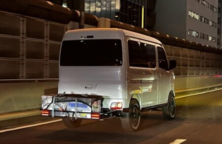 ここまで読んで「軽自動車いいのか?」と思うだろう。軽自動車はナンバーの封緘をしていない。されど本物のナンバープレートが見えないと違法なのは同じ。ということで軽自動車ならナンバープレートを移設すれば(写真のケースならキャリアの最後尾)法規上の問題無いという解釈になっている。ただナンバー灯も付けないと視認出来ないということになり違反。