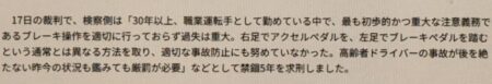 なのに検察側は「最も初歩的かつ重大な注意義務であるブレーキ操作を適切に行っておらず過失は重大。右足でアクセルペダルを、左足でブレーキペダルを踏むという通常とは異なる方法を取り、適切な事故防止にも努めていなかった」と見当違いなことを主張して厳罰を求めた。これが認められれば「左足ブレーキは安全運転義務違反」とされる。