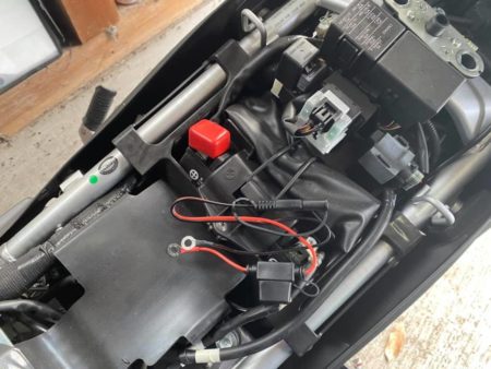 正月休みにネット見ていたら、消費税&送料込み2850円でバッテリーテンダーのような充電器を発見! 1万5千円となれば気軽に導入しようという気にならないけれど、この価格なら問題無し。早速ポチって届いたのでスズキに取り付けてみた。作業は超簡単。バッテリー端子の付属のコードを取り付けるのみ。コード妙に硬く、本体軽いあたりが中華製の証明であります。
